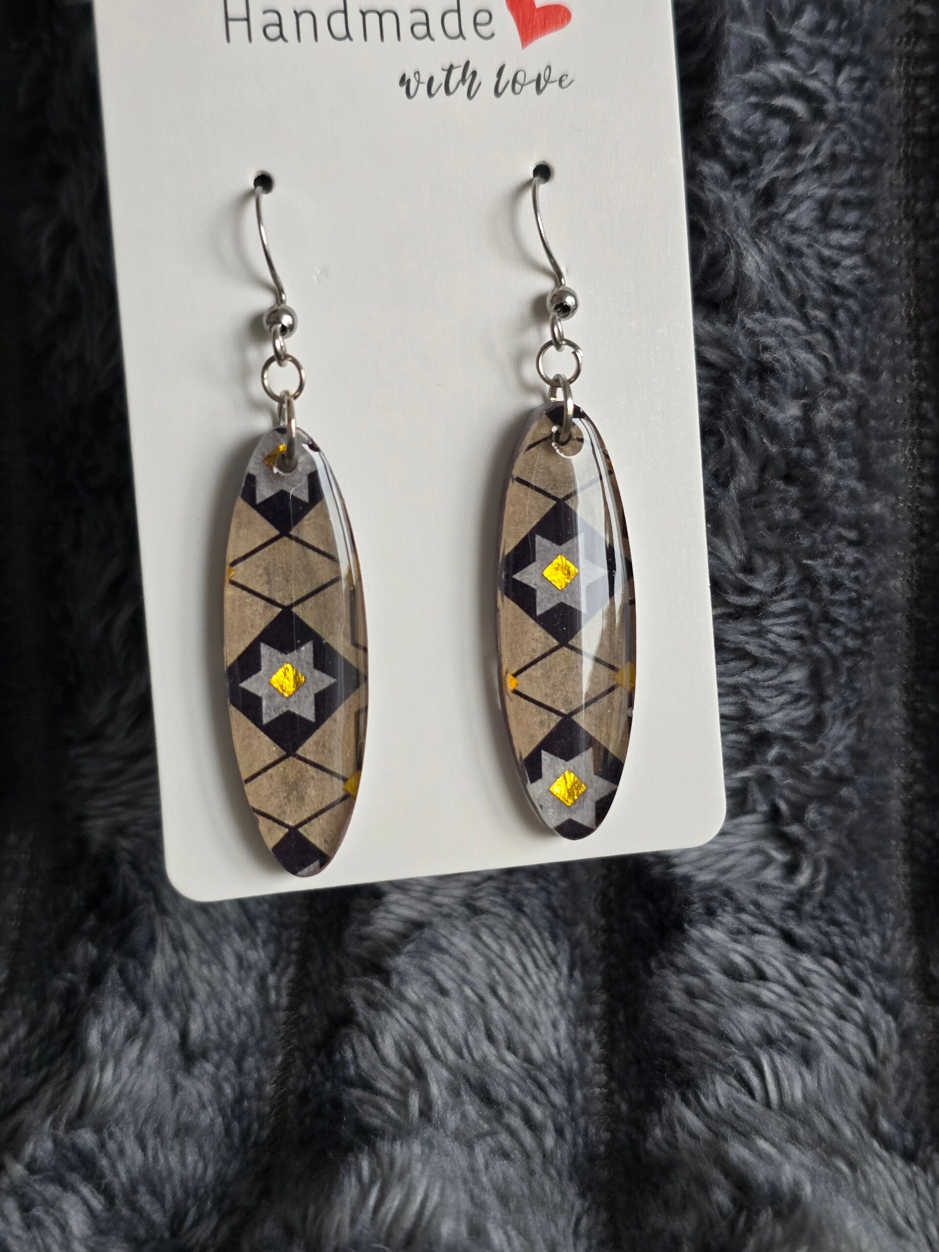 De jolies boucles d'oreilles avec motifs colorés et brillants.